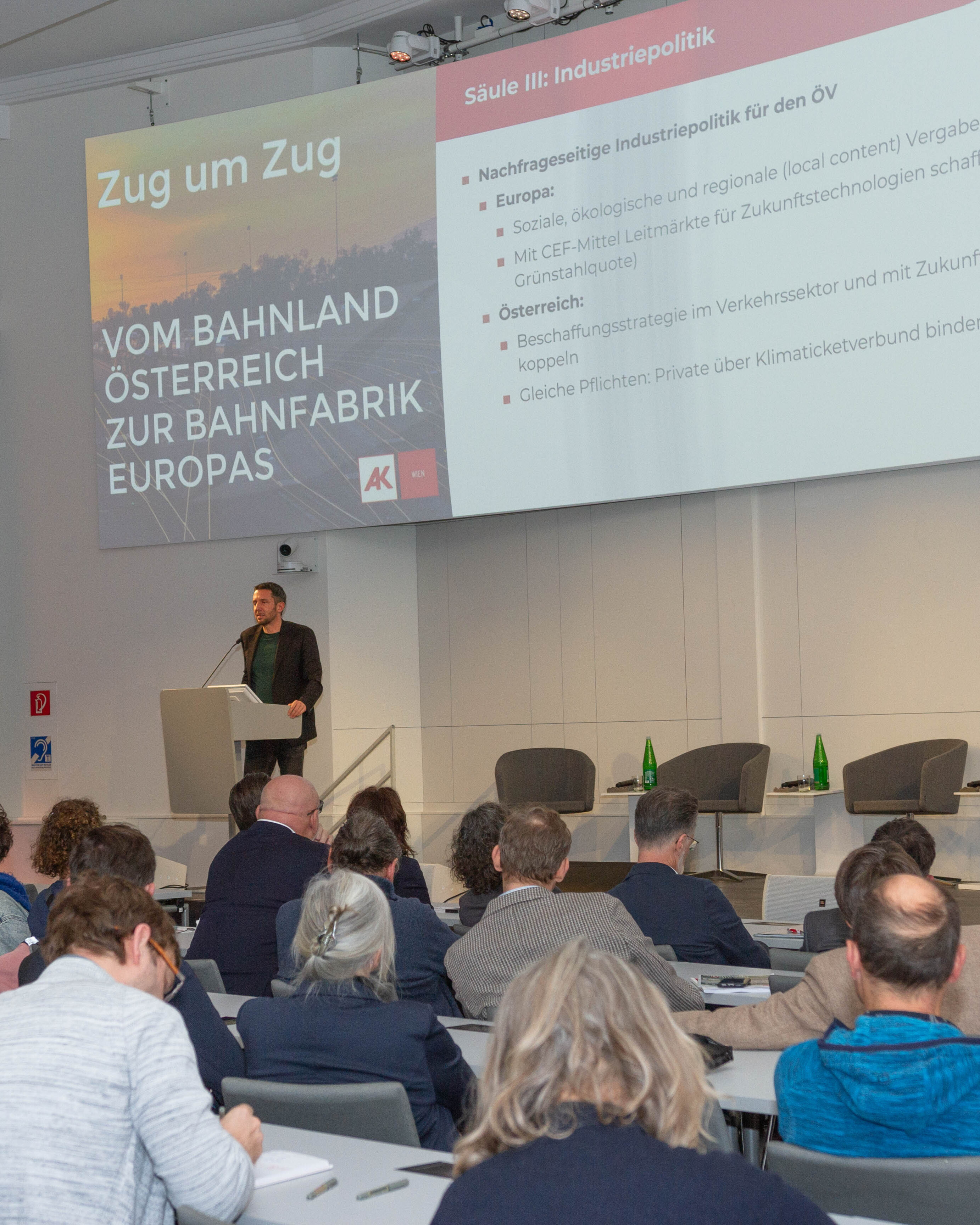 Roman Hebenstreit (Vorsitzender der Gewerkschaft vida und ÖBB-Konzernbetriebsratsvorsitzender) hob hervor, dass Zuversicht und Stabilität für die Beschäftigten der Bahnbranche essenziell seien. Neben Investitionen in die physische Infrastruktur brauche es vor allem Investitionen in die Beschäftigten und gute Arbeitsbedingungen. Zudem seien faire Wettbewerbsbedingungen zwischen Straße und Schiene dringend herzustellen.